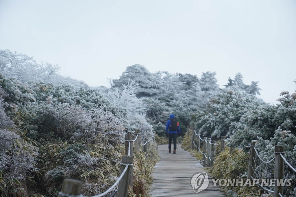 | ▲ 5월 한라산에 상고대 '꽁꽁' (제주=연합뉴스) 2일 오전 한라산 윗세오름(해발 1천600∼1천700m) 등산로 부근에 있는 구상나무에 상고대가 폈다. 이날 한라산 정상 부근이 영하권을 기록해 따뜻한 제주 해안지역 봄 날씨와 대조적인 모습을 보였다. 2021.5.2 [고원상씨(인스타ID @oursong12) 제공. 재판매 및 DB 금지] koss@yna.co.kr |