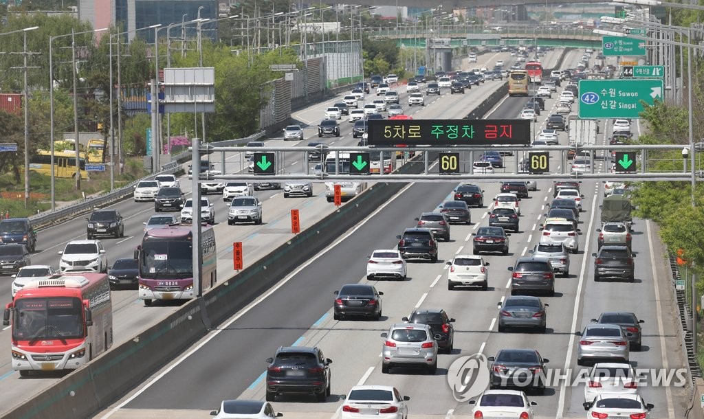 | ▲ 나들이객 늘어나며 정체되는 고속도로 (용인=연합뉴스) 홍기원 기자 = 완연한 봄 날씨를 보인 2일 오후 경기도 용인시 경부고속도로 신갈분기점 부근 서울 방향(오른쪽)이 정체되고 있다. 2021.5.2 xanadu@yna.co.kr |