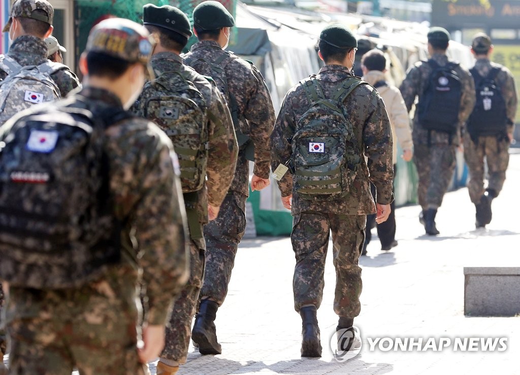 | ▲ Soldiers walk outside a bus terminal in eastern Seoul on Oct. 25, 2021. (Yonhap) |