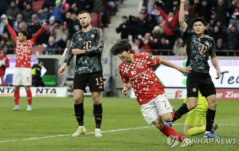 | ▲ 뮌헨의 김민재를 뒤로 하고 골세리머니를 펼치는 마인츠의 이재성 [EPA=연합뉴스] |