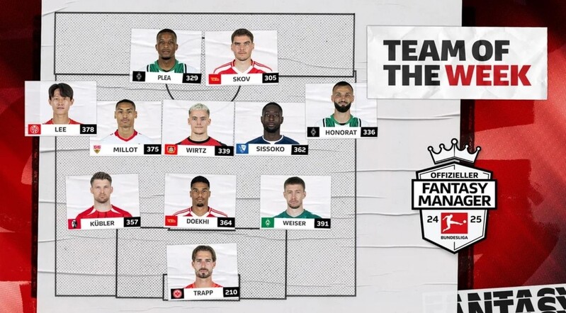 | ▲ 2024-2025 독일 분데스리가 14라운드 베스트 11에 뽑힌 이재성 [독일 분데스리가 홈페이지 캡처. 재판매 및 DB 금지] |