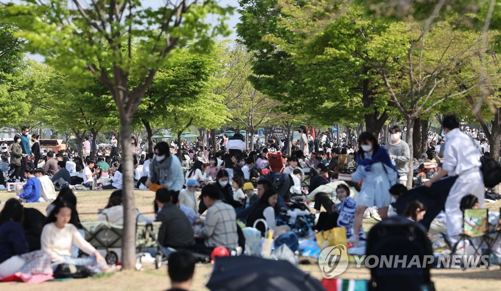 | ▲ Han River Park in southern Seoul is crowded with people on April 17, 2022. (Yonhap) |