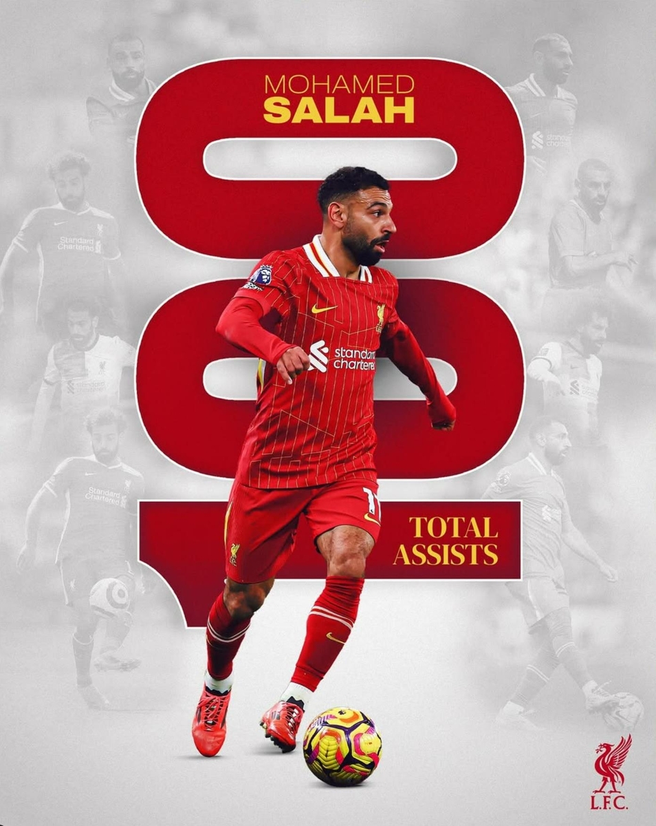 살라흐, 리버풀 입단 이후 공식전 372경기에서 '100번째 도움'