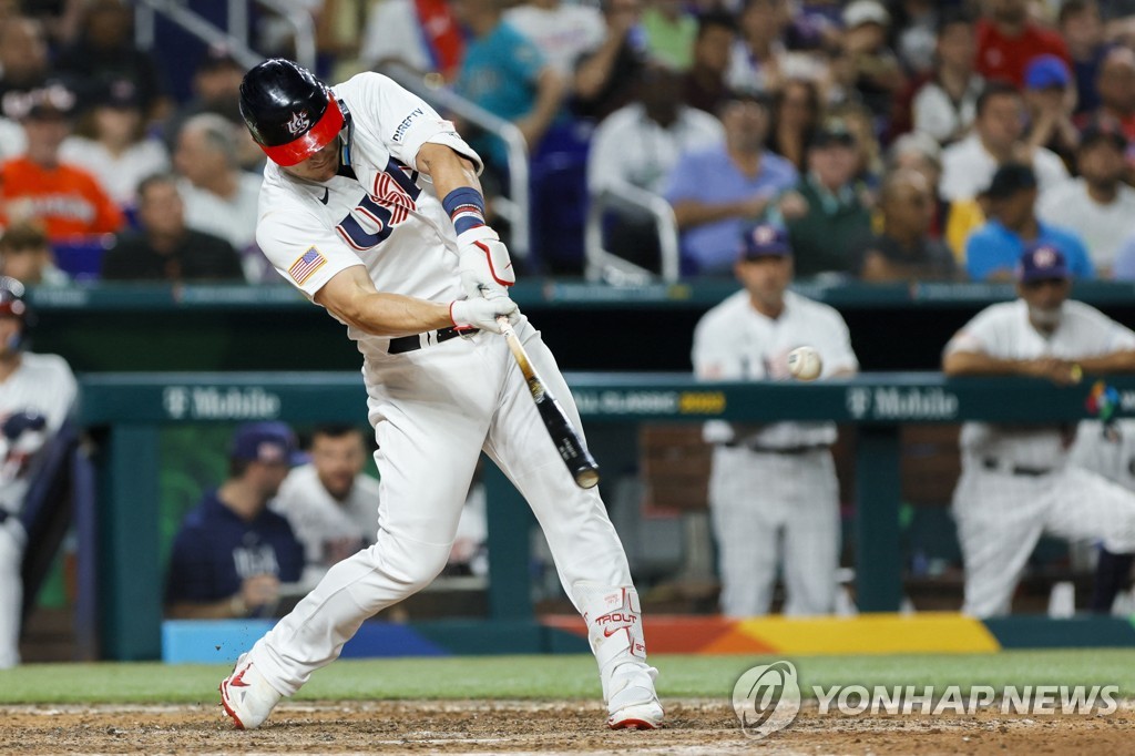 | ▲ WBC 쿠바와의 4강전에서 1타점 2루타를 치는 트라우트 [USA 투데이/로이터=연합뉴스 자료사진] |