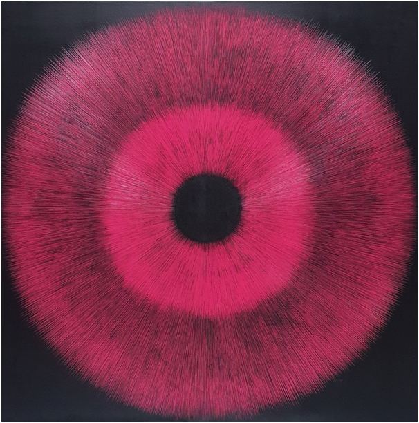작가는 캔버스에 아크릴과 돌가루를 입히고 조각도로 선을 파내 색을 칠한 작품 30여점을 선보인다.