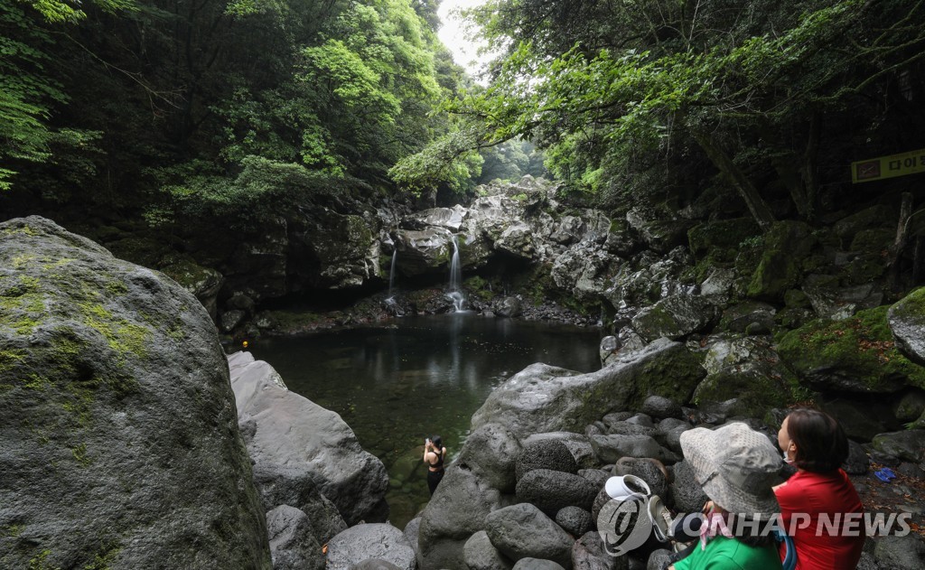 | ▲ 서귀포시 돈내코계곡 원앙폭포 (서귀포=연합뉴스) 진성철 기자 = 제주 서귀포시 돈내코계곡의 원앙폭포. 백중날 여인들이 폭포수를 맞던 곳이다. 2022.6.13 zjin@yna.co.kr |
