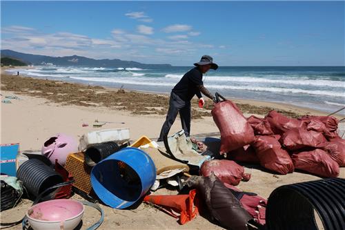 | ▲ 동해 어달해변 태풍 쓰레기 수거 [동해시 제공. 재판매 및 DB 금지] |