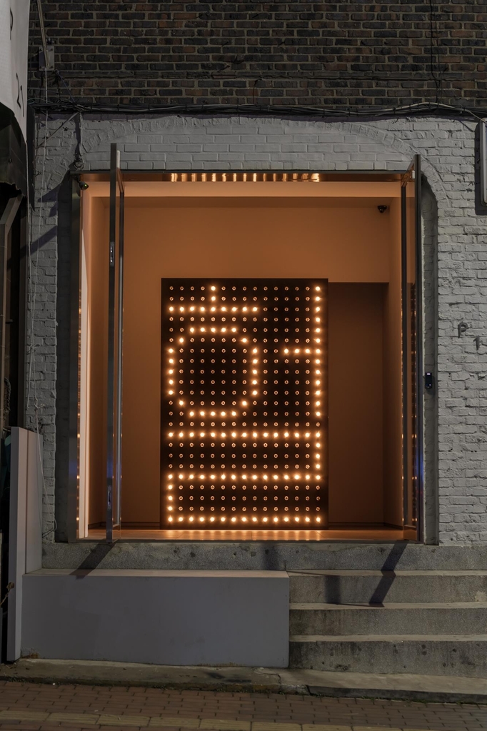 LED 전구를 사용한 작품은 하나의 글자가 변화하고, 필라멘트 전구를 이용한 작품은 네 개의 글자가 변화한다. 작품에서 전구의 빛은 다양한 조합을 그려낸다. 한순간 문자이다가 다음 순간 선과 획이 무너지며 무의미한 도형이 되기도 한다. 이를 통해 태싯그룹은 모호한 경계에 관해 이야기한다. 다음 달 15일까지.