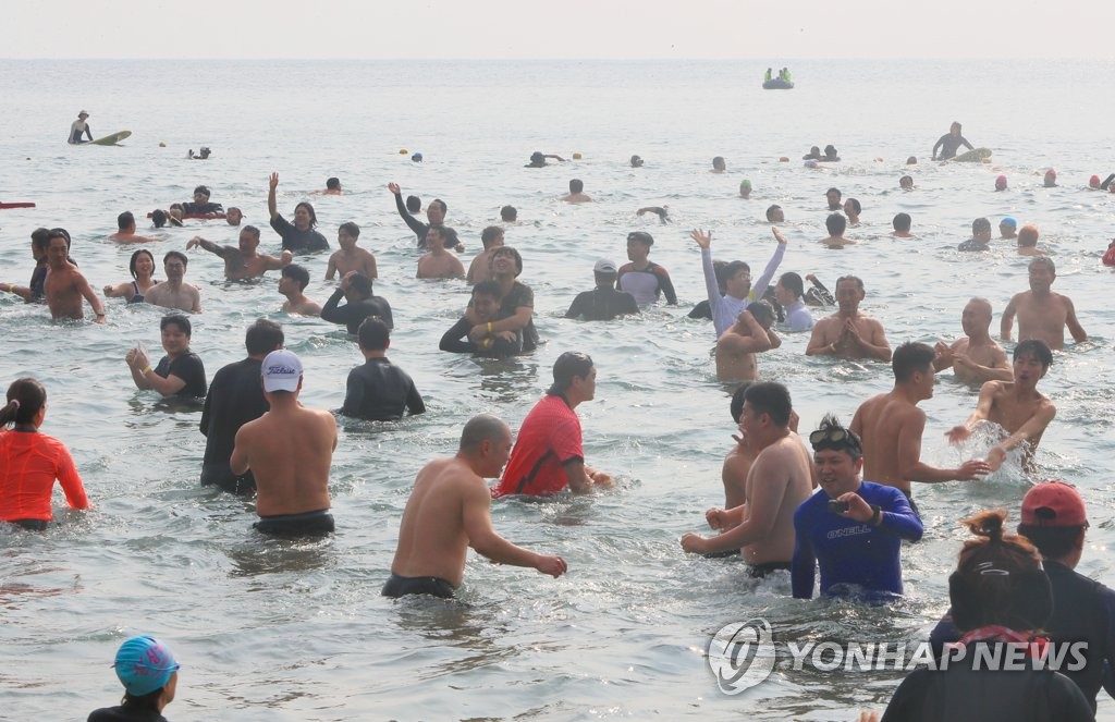 참가자들은 바다에서 헤엄치며 저마다 묵은해의 시름을 바다에 던져버리고 새해 소원을 빌었다.