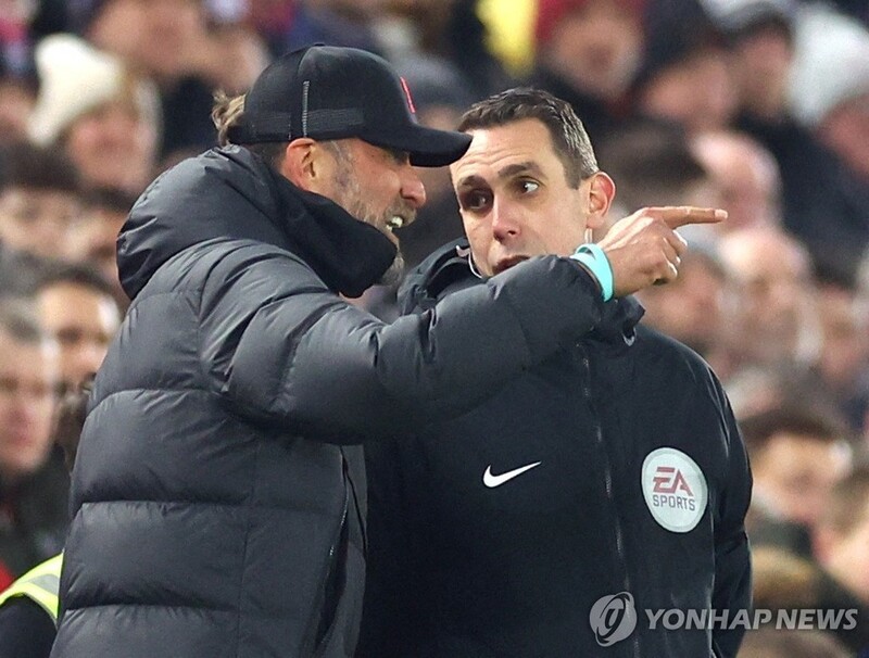 | ▲ 클롭 감독과 경기 중 대화 나누는 쿠트 심판 [로이터=연합뉴스] |