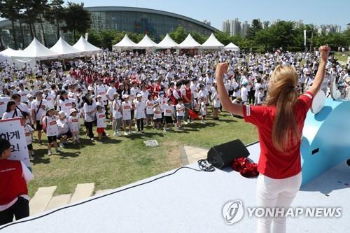 | ▲ 2023 세이브더칠드런 국제어린이마라톤 (파주=연합뉴스) 임병식 기자 = 3일 경기도 파주시 운정호수공원에서 열린 2023 세이브더칠드런 국제어린이마라톤에서 참가자들이 출발에 앞서 체조로 몸을 풀고 있다. 2023.6.3