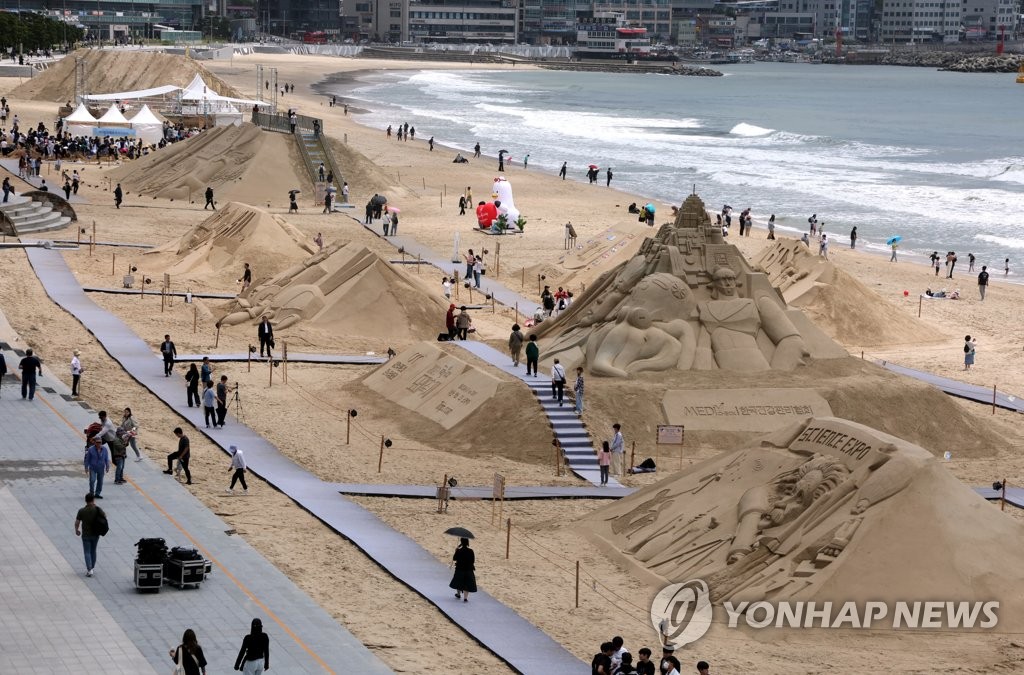 부산 '해운대 모래축제' 행사장인 해운대해수욕장과 구남로 해운대광장에서는 이른 오전부터 관광객과 나들이 인파가 몰렸다.