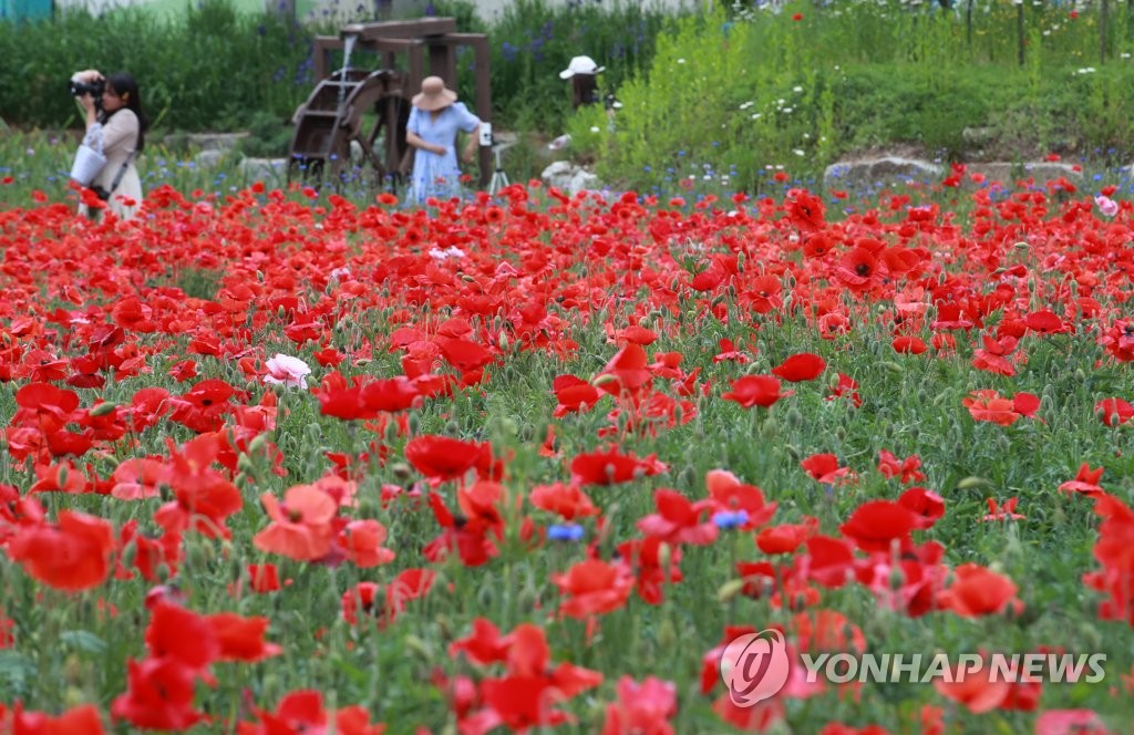| ▲ 제16회 용수골꽃양귀비축제 개막 첫날인 지난 19일 원주시 판부면 서곡리 축제장을 찾은 방문객들이 붉은 꽃양귀비밭에서 초여름날의 추억을 만들고 있다. [연합뉴스 자료사진] |