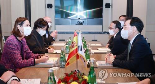 Maroto voiced hope the prime minister's visit to Seoul would help enhance cooperation between the two nations in various advanced sectors, and Lee asked for Madrid's support for South Korean firms seeking to make inroads into the European nation, according to the ministry.