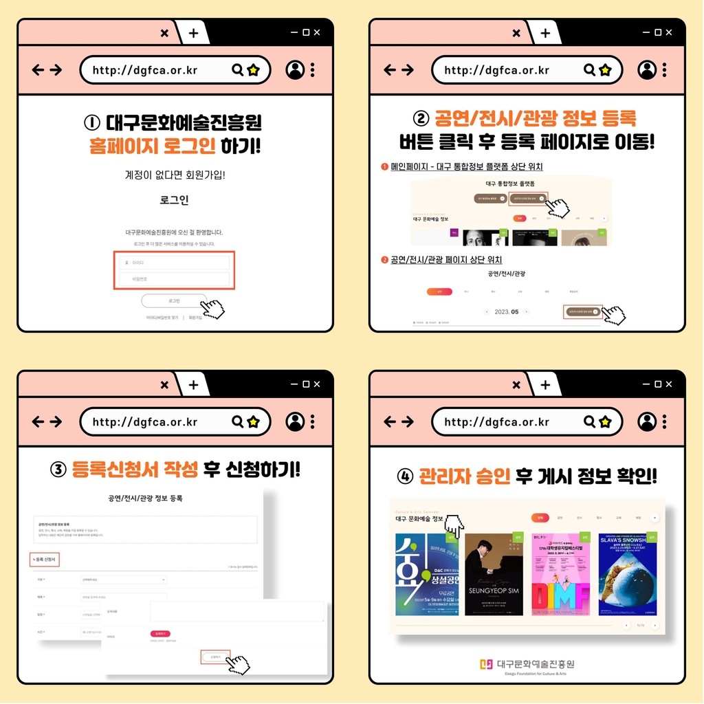 | ▲ 통합정보 등록 절차 [대구문화예술진흥원 제공. 재판매 및 DB 금지] |