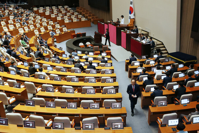 The first plenary session of the newly launched 22nd National Assembly opens in Seoul on June 5, 2024, with the ruling People Party boycotting it due to a dispute with the main opposition Democratic Party over how to allocate the chairs of parliamentary committees. (Yonhap)