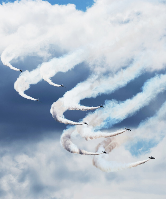 The South Korean Air Force's acrobatic flight team, the Black Eagles, performs in a rehearsal for the Seoul International Aerospace & Defense Exhibition over Seoul Air Base in Seongnam, south of Seoul, on Oct. 15, 2025. The annual expo runs from Oct. 17-19. (Yonhap)