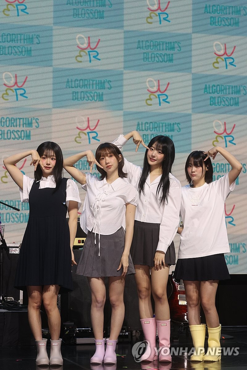 걸밴드 QWER은 23일 서울 서대문구에서 열린 두 번째 미니음반 '알고리즘스 블러썸'(Algorithm's Blossom) 발매 기념 쇼케이스에서 "사랑과 상처를 모두 양분으로 끌어안고 세상에 없는 꽃을 피워내는 우리의 여정을 그려냈다"며 이같이 말했다.