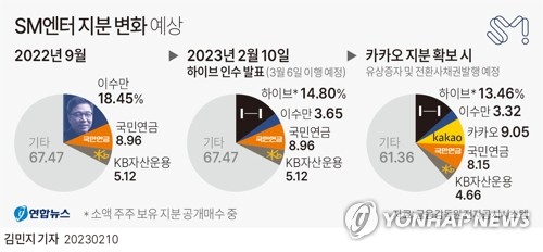 | ▲ [그래픽] SM엔터 지분 변화 예상 (서울=연합뉴스) 김민지 기자 = minfo@yna.co.kr