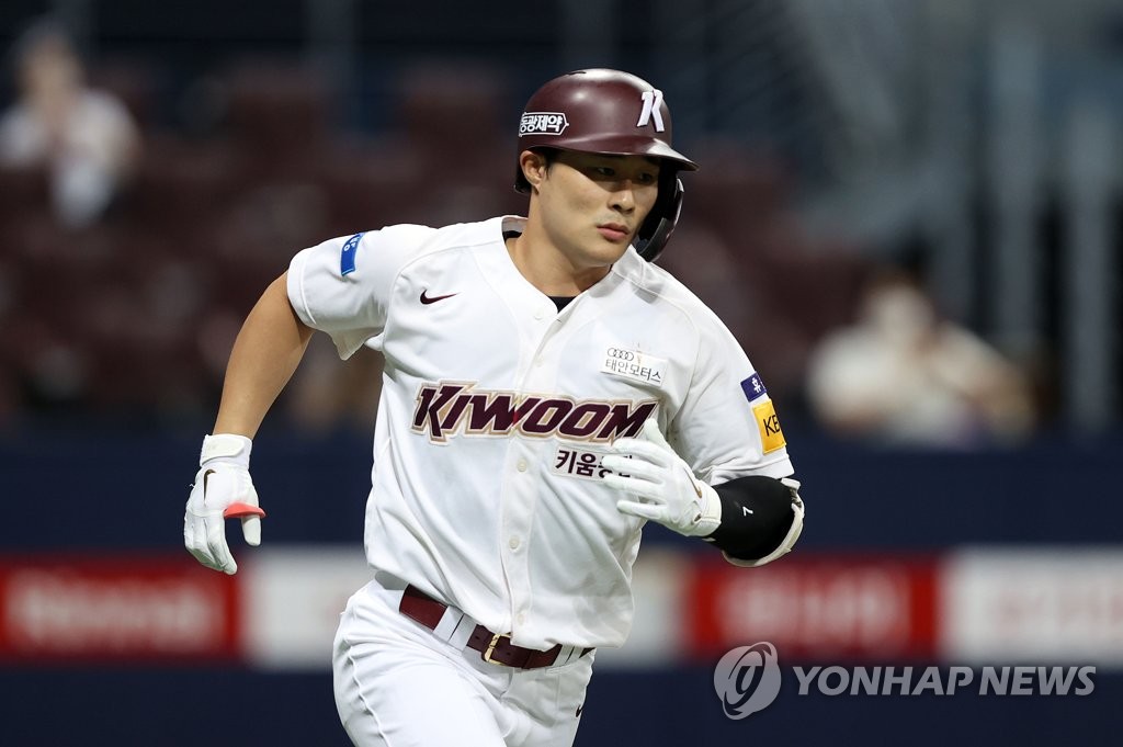 | ▲ In this file photo from Aug. 5, 2020, Kim Ha-seong of the Kiwoom Heroes heads to first base after hitting a three-run home run against the KT Wiz during the bottom of the third inning of a Korea Baseball Organization regular season game at Gocheok Sky Dome in Seoul. (Yonhap) |