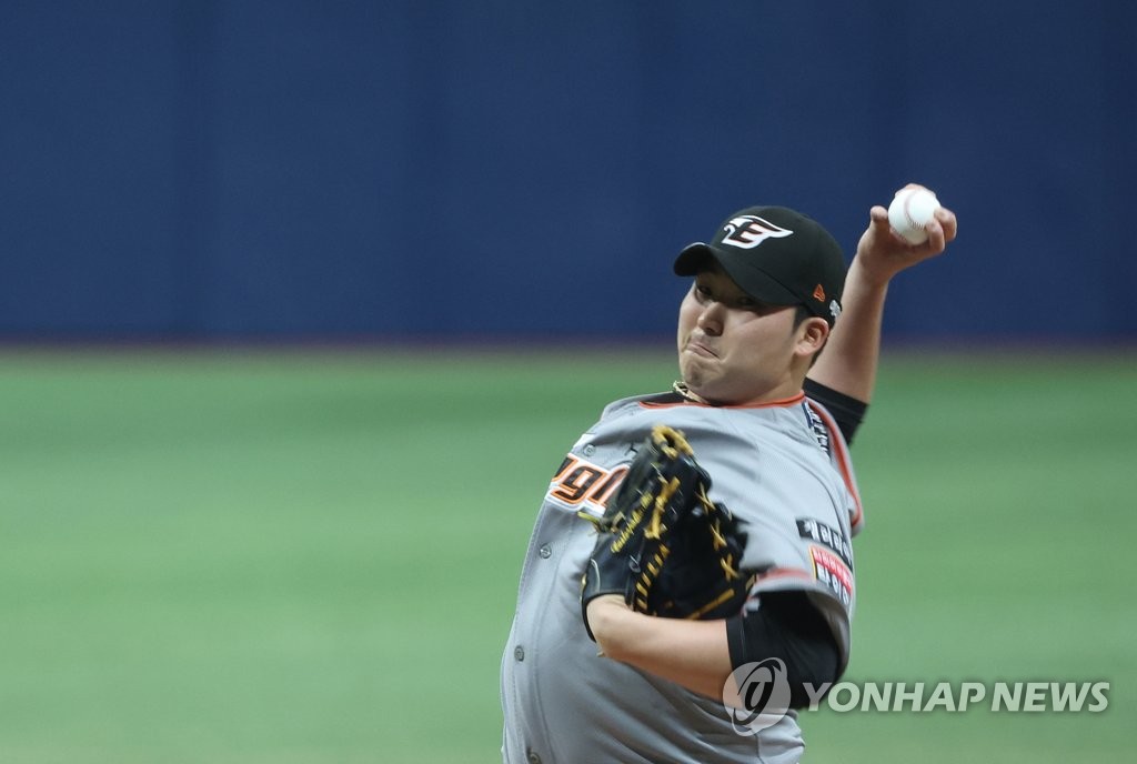| ▲  In this file photo from March 22, 2022, Yang Hyeon-jong of the Kia Tigers pitches against the Doosan Bears during the top of the first inning of a Korea Baseball Organization preseason game at Gwangju-Kia Champions Field in Gwangju, some 330 kilometers south of Seoul. (Yonhap) |