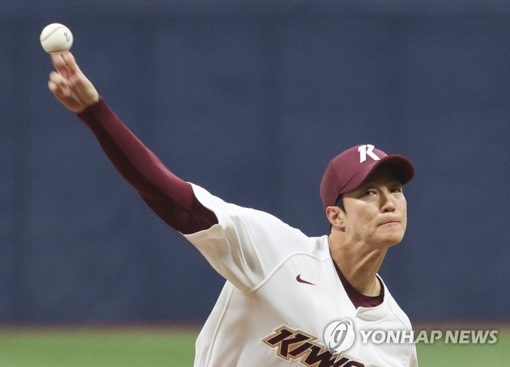 | ▲  In this file photo from March 15, 2022, An Woo-jin of the Kiwoom Heroes pitches against the LG Twins during a Korea Baseball Organization preseason game at Gocheok Sky Dome in Seoul. (Yonhap) |