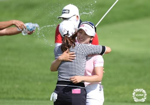 | ▲ 연장전에서 승리한 뒤 허다빈(왼쪽)과 포옹하는 전예성. [KLPGA 제공. 재판매 및 DB 금지] |