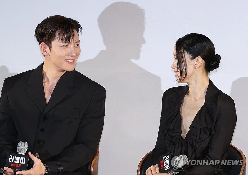 | ▲ Actors Ji Chang-wook (L) and Jeon Do-yeon look at each other during a press event for "Revolver" in Seoul on July 9, 2024. (Yonhap) |