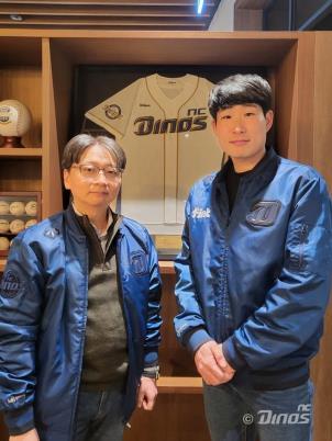 | ▲ This photo provided by the NC Dinos on Dec. 16, 2022, shows pitcher Lee Jae-hak (R), who re-signed with the Korea Baseball Organization club as a free agent. (PHOTO NOT FOR SALE) (Yonhap) |