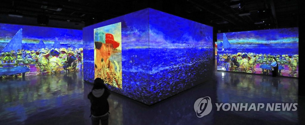 (서귀포=연합뉴스) 박지호 기자 = 제주의 명소로 자리 잡은 몰입형 미디어아트 전시관 '빛의 벙커'가 세 번째 전시 '모네, 르누아르…샤갈, 지중해의 화가들'을 23일부터 선보인다.
