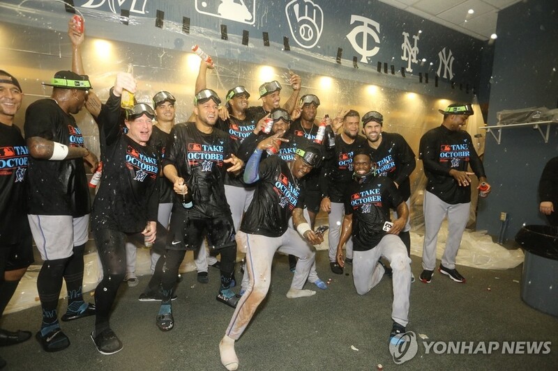 | ▲ 포스트시즌 진출 세리머니를 펼치는 마이애미 선수단 [USA TODAY=연합뉴스] |