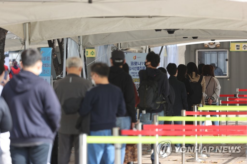 | ▲ People wait in line to receive virus tests at a makeshift COVID-19 testing clinic in Seoul on Nov. 6, 2021. (Yonhap) |