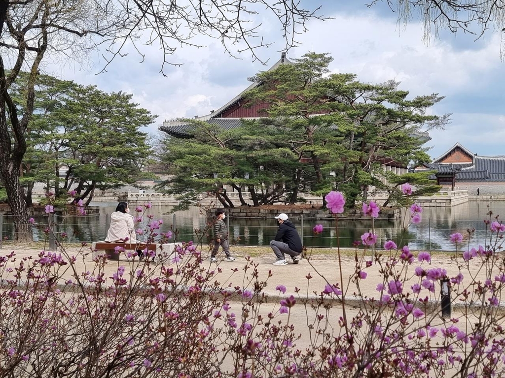 같은 시각 경복궁에도 한복을 입고 데이트를 나온 연인과 친구, 경회루 벤치에 앉아 담소를 나누는 노인들이 보였다. 봄꽃이 만개하진 않았지만 일찍 피어난 꽃들 앞에서 사진을 찍으려는 사람들도 종종 목격됐다.