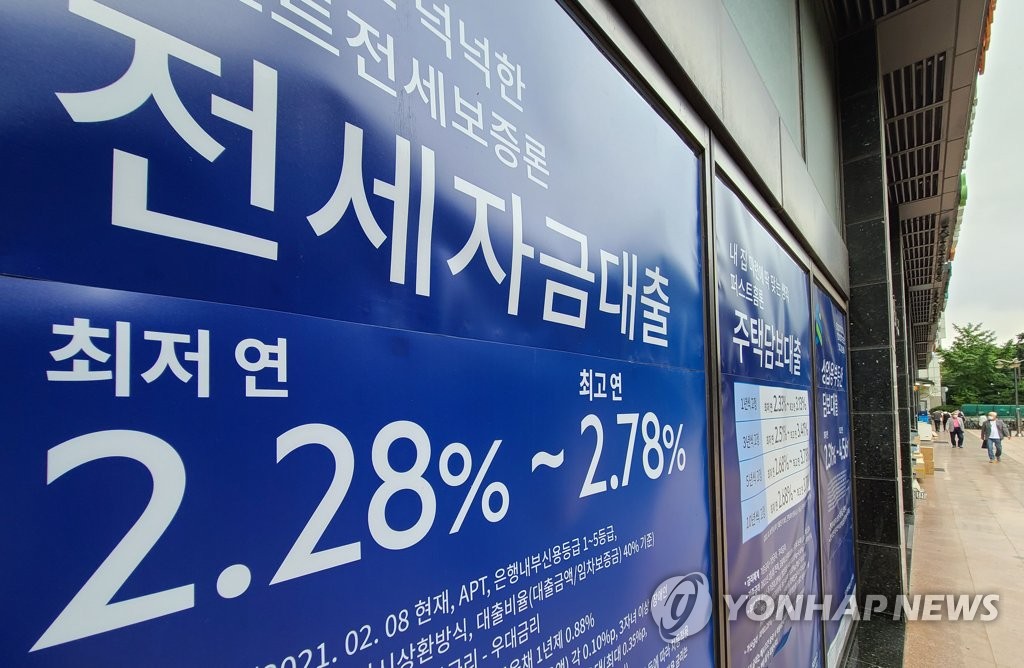 | ▲ This file photo, taken Aug. 26, 2021, shows a sign about household loan programs that was put up at the exterior of a bank in Seoul. (Yonhap) |