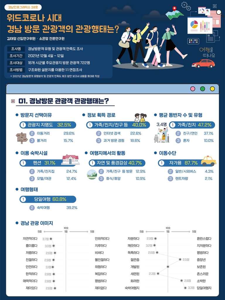 경남연구원 인포그래픽스 제작…관광 만족도 5점 만점에 '3.5점'