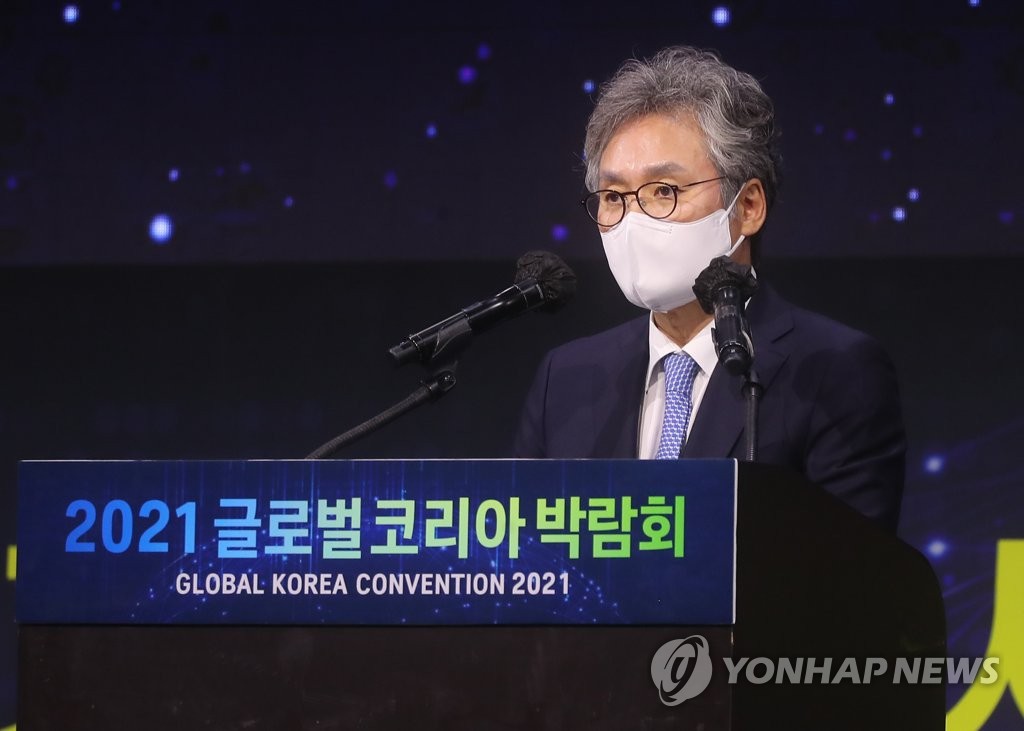 | ▲ 2021 글로벌 코리아 박람회 개막 (서울=연합뉴스) 류효림 기자 = 정해구 경제·인문사회연구회 이사장이 15일 서울 서초구 양재동 더케이호텔에서 열린 2021 글로벌 코리아 박람회 개막식에서 개회사를 하고 있다. 2021.11.15 ryousanta@yna.co.kr |