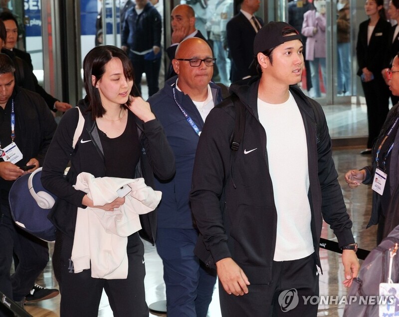 | ▲ MLB 다저스 오타니, 호텔 도착 (서울=연합뉴스) 임화영 기자 = '2024 메이저리그(MLB) 월드투어 서울 시리즈'에 출전하는 로스앤젤레스 다저스 오타니 쇼헤이와 아내 다나카 마미코가 15일 오후 방한 기간 머무를 서울의 한 호텔에 도착하고 있다. 2024.3.15 hwayoung7@yna.co.kr |