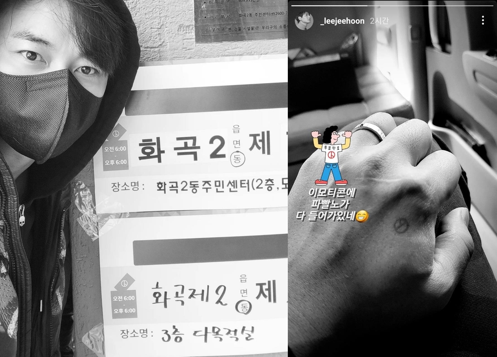 가수 겸 배우 이지훈은 투표소 앞에서 찍은 듯한 흑백 사진을 올린 뒤 "여러분의 소중한 한 표가 미래의 우리 자녀에게 보다 나은 대한민국을 선물할 수 있습니다. 서두르세요"라고 적었다.