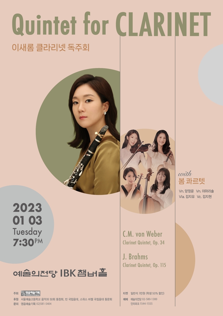 이새롬은 봄콰르텟과 함께 베버와 브람스의 클라리넷 5중주 곡들을 선보인다.