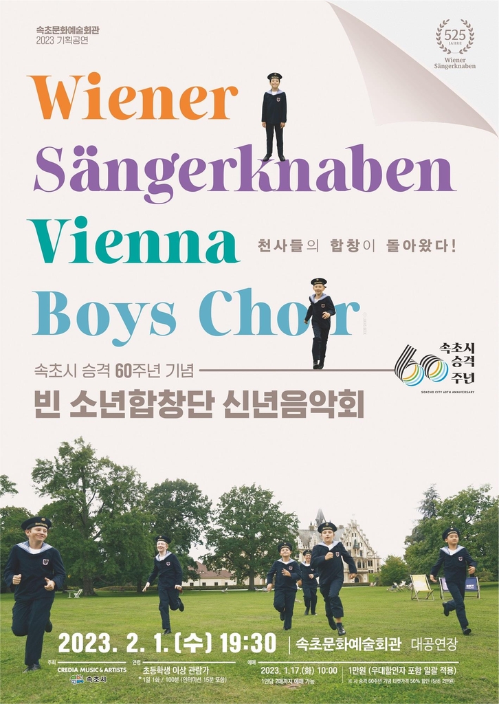 (속초=연합뉴스) 속초시는 시 승격 60주년을 기념해 빈 소년합창단 신년 음악회를 다음 달 1일 오후 7시30분 속초문화예술회관 대공연장에서 개최한다고 11일 밝혔다.