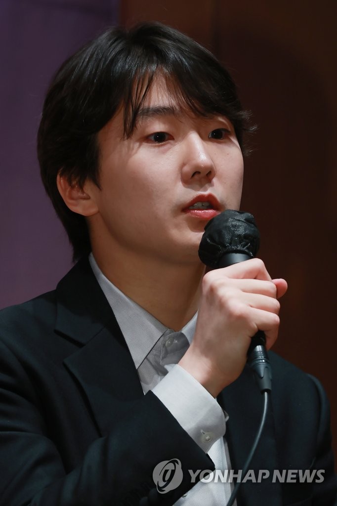 | ▲ 정명훈과 협연 소감 밝히는 조성진 (서울=연합뉴스) 진연수 기자 = 피아니스트 조성진이 2일 오후 서울 강남구 거암아트홀에서 열린 창단 475주년 기념 정명훈&드레스덴 슈타츠카펠레 피아니스트 조성진 협연 기자간담회에서 질문에 답변하고 있다. 2023.3.2 jin90@yna.co.kr |
