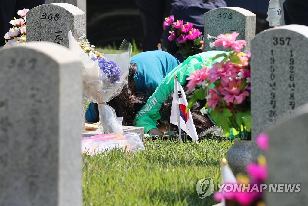 | ▲ 절 올리는 유가족 (서울=연합뉴스) 신현우 기자 = 현충일을 이틀 앞둔 4일 오전 서울 동작구 국립서울현충원을 찾은 유가족이 참배하고 있다. 2023.6.4 nowwego@yna.co.kr |