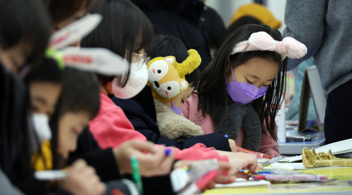 Children writing lettersChildren write letters at the National Folk Museum of Korea in central Seoul on Jan. 24, 2023, celebrating the Lunar New Year holiday. (Yonhap)(END)