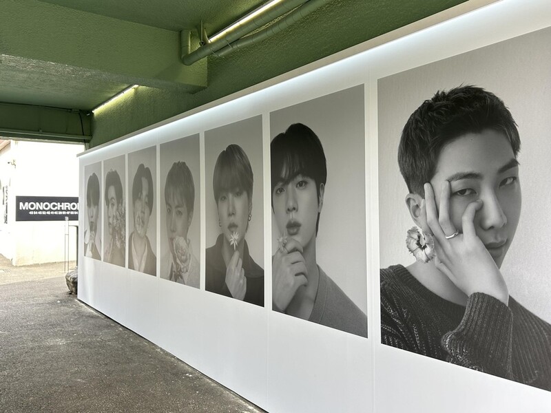 | ▲ "추억을 배송합니다" (서울=연합뉴스) 김예나 기자 = 26일 서울 성수동에서 열린 그룹 방탄소년단(BTS)의 팝업 '모노크롬'(MONOCHROME) 행사장에 멤버들의 사진이 전시돼 있다. 2024.4.26 yes@yna.co.kr |