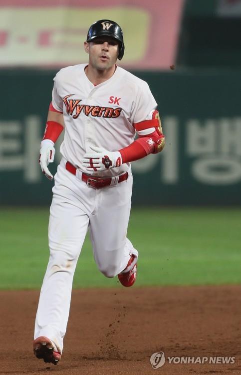 | ▲ In this file photo from Nov. 7, 2018, Jamie Romak of the SK Wyverns rounds the bases after hitting a three-run home run against the Doosan Bears in the bottom of the first inning of Game 3 of the Korean Series at SK Happy Dream Park in Incheon, 40 kilometers west of Seoul. (Yonhap) |