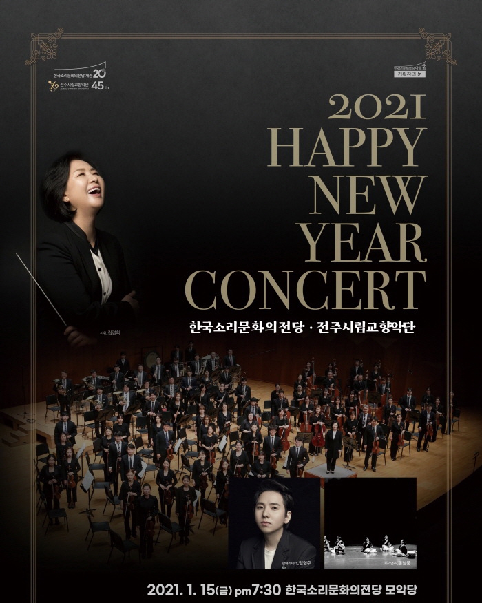한국소리문화의전당 관계자는 "오랫동안 준비한 올해 신년음악회를 코로나19 탓에 비대면으로 진행하게 됐다"면서도 "무대를 실시간으로 볼 수 있으니 가족, 연인, 친구와 함께 공연을 즐겨달라"고 말했다.