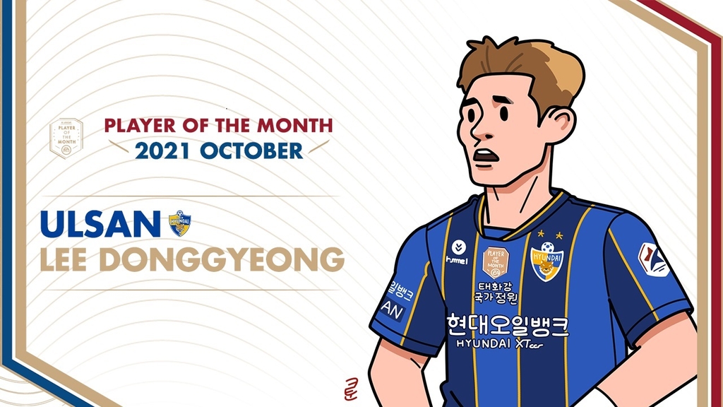 SEOUL, Nov. 8 (Yonhap) -- Ulsan Hyundai FC midfielder Lee Dong-gyeong was voted South Korean football's top player for October on Monday, becoming the first player from his club to be honored in 2021.