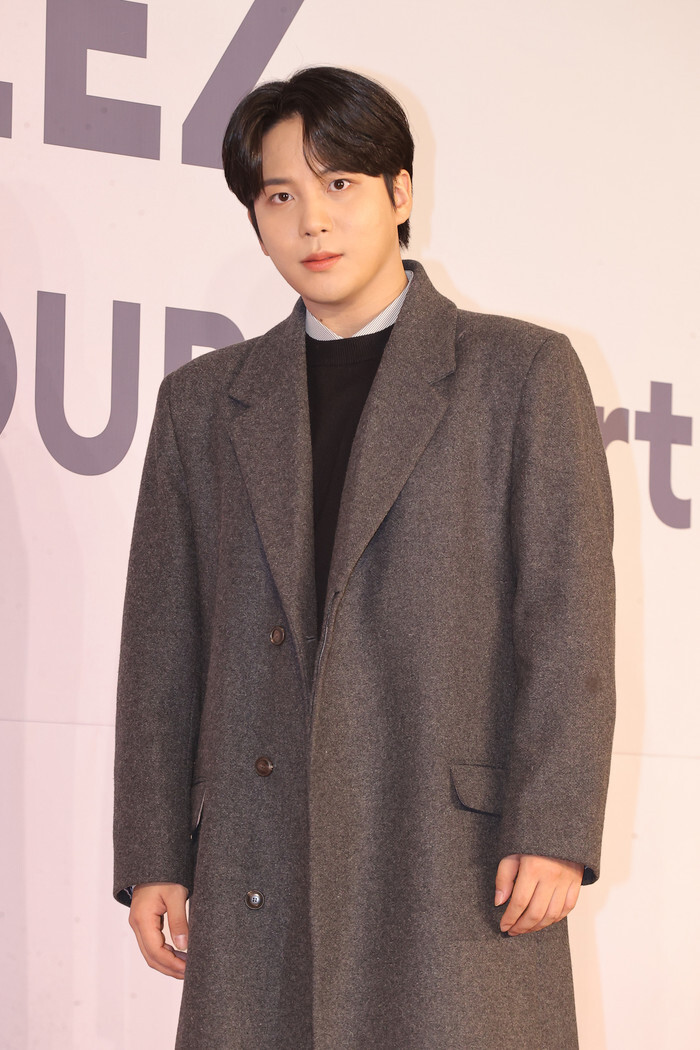 Jongho, a member of South Korean boy group Ateez, poses for a photo during a showcase to promote the group's eleventh mini album "Golden Hour: Part 2" in Seoul on Nov. 14, 2024. (Yonhap)