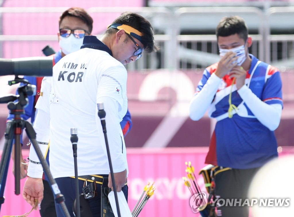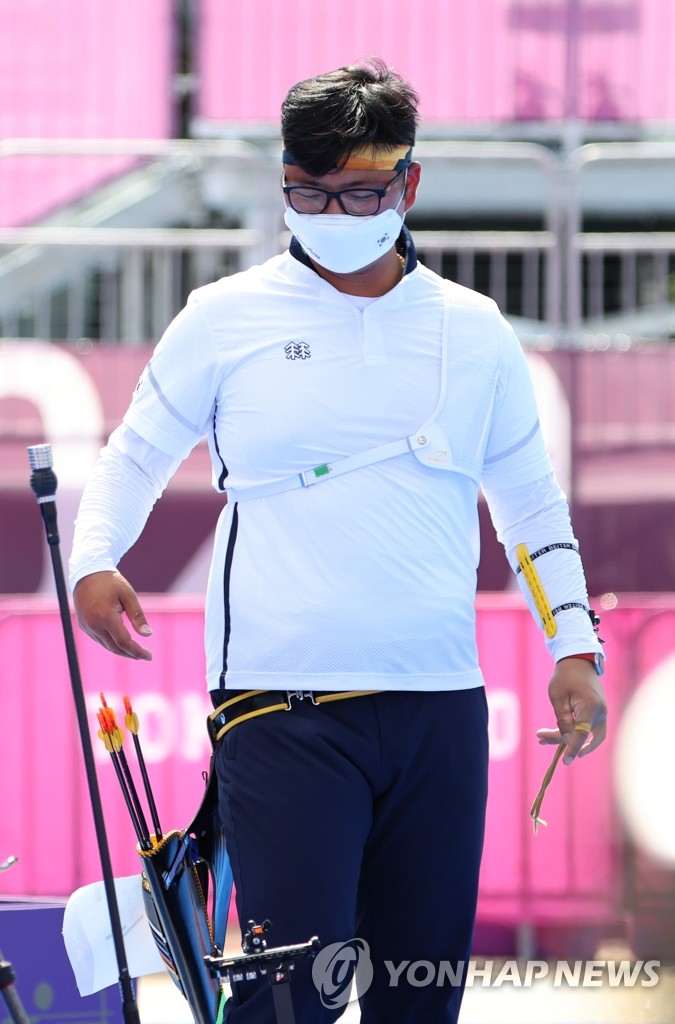 TOKYO, July 31 (Yonhap) -- Kim Woo-jin was knocked out in the men's individual archery event at the Tokyo Olympics on Saturday, unable to help South Korea complete a clean sweep of gold medals in Japan.