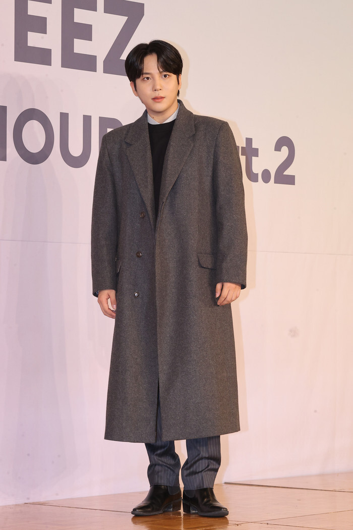 Jongho, a member of South Korean boy group Ateez, poses for a photo during a showcase to promote the group's eleventh mini album "Golden Hour: Part 2" in Seoul on Nov. 14, 2024. (Yonhap)